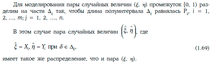 Если случайные величины ξ и η независимы, то для разыгрывания пары (ξ, η) достаточно разыграть каждую случайную величину в отдельности. Для разыгрывания непрерывной случайной величины можно вначале найти дискретную случайную величину, близкую к данной случайной величине, а затем разыграть эту дискретную случайную величину.