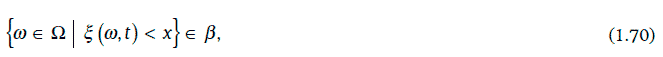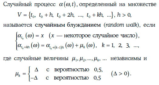 Функция ξ(w, t) двух переменных w ∈ Ω и t ∈ V называется случайным процессом (stochastic process), определенным на множестве V, если для любых t ∈ V и x ∈ R (R – множество всех действительных чисел) множество