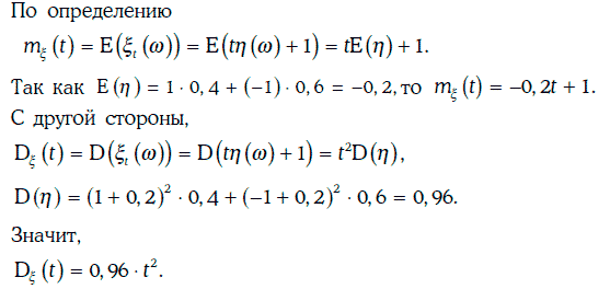 Пример 1.70. Найдем математическое ожидание и дисперсию случайного процесса из примера 1.68.