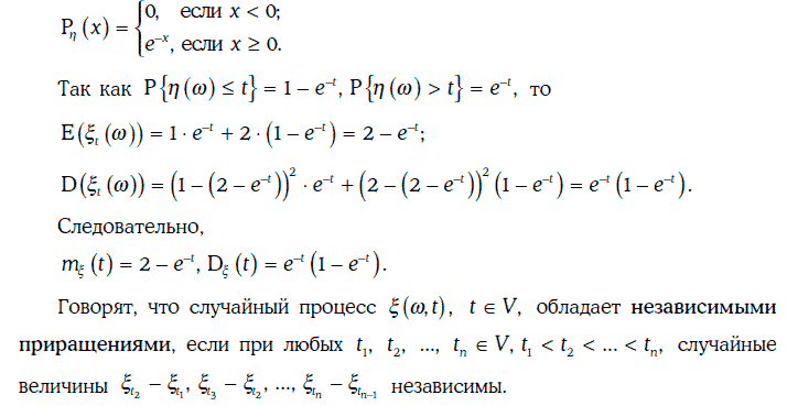 Пример 1.71. Рассмотрим случайный процесс из примера 1.69, считая, что случайная величина η(w) распределена показательно с плотностью