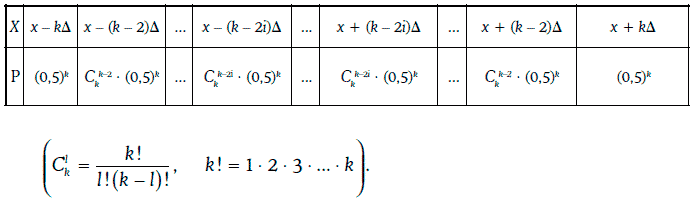Сечением случайного блуждания в момент времени t0 + kh является дискретная случайная величина, закон распределения вероятностей которой имеет вид: