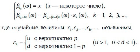 Приращения биномиальной модели, вообще говоря, не являются независимыми. Однако случайный процесс ln β (w, t) имеет независимые приращения.