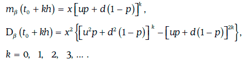 Если случайный процесс β (w, t) является биномиальной моделью с параметрами u, d, p, то