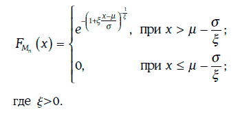 Предположим, что случайная величина Mn = max{η1, η2, …, ηn} имеет распределение Фреше, т. е.