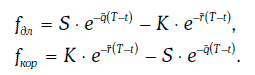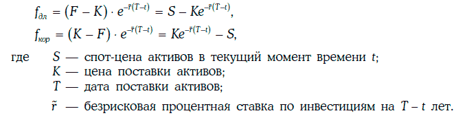 В этом случае для стоимости длинной и короткой позиций по форвардному контракту имеем равенства:
