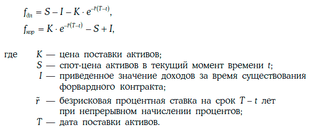 Стоимости длинной и короткой позиций по форвардному контракту на активы с известными доходами можно найти следующим образом: