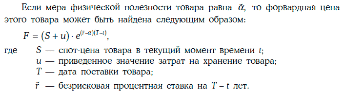 Если же товар в основном используется как средство инвестирования, то возможна следующая стратегия: произвести короткую продажу единицы товара, экономя при этом затраты на хранение товара, полученные средства инвестировать под безрисковую процентную ставку