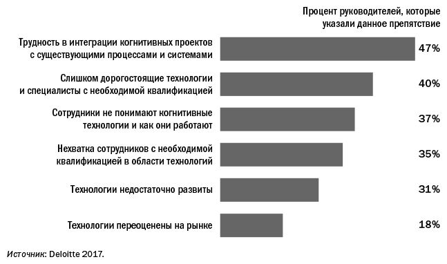 Можно утверждать, что компании консервативно настроены к освоению технологий когнитивного взаимодействия по большей части в силу их несовершенства. Facebook, например, обнаружил, что чат-боты его мессенджера не способны ответить на 70 % запросов пользователей без вмешательства человека. В результате Facebook и ряд других компаний ограничили использование ботов – теперь они применяются только при разговорах определенного типа и на определенные темы.