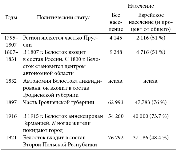 Табл. 1.1. Политические сдвиги и демографический рост в Белостоке, 1795–1939 гг.