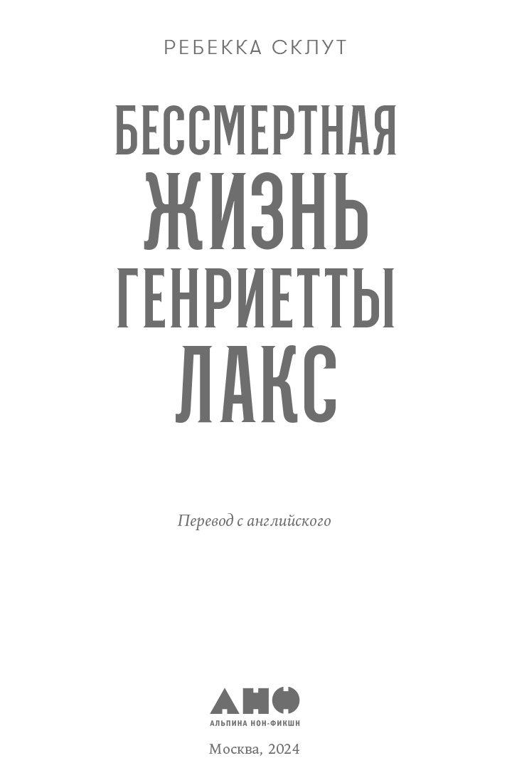 Это документальное произведение. Не изменено ни одно имя. Ни один персонаж и ни одно событие не были придуманы. Работая над этой книгой, я тысячи часов проводила интервью с семьей и друзьями Генриетты Лакс, а также с адвокатами, специалистами в области этики, учеными и журналистами, писавшими о семье Лакс. Я также пользовалась обширными архивами фотографий и документов, научными и историческими исследованиями и личными дневниками Деборы, дочери Генриетты.