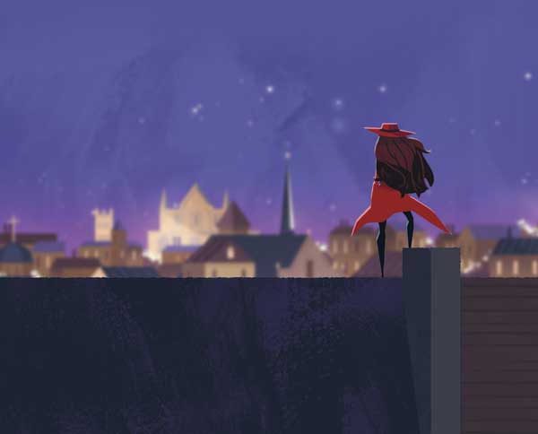 Кармен Сандиего смотрела на горизонт, остановившись на мгновение, чтобы сделать снимок. Вид с оранжевой крыши завораживал. Вдалеке виднелись башни собора Святого Петра, освещенные лучами заходящего солнца. Из-под ее шляпы ниспадали длинные темные локоны. Кармен поправила шляпу и глубоко вздохнула.