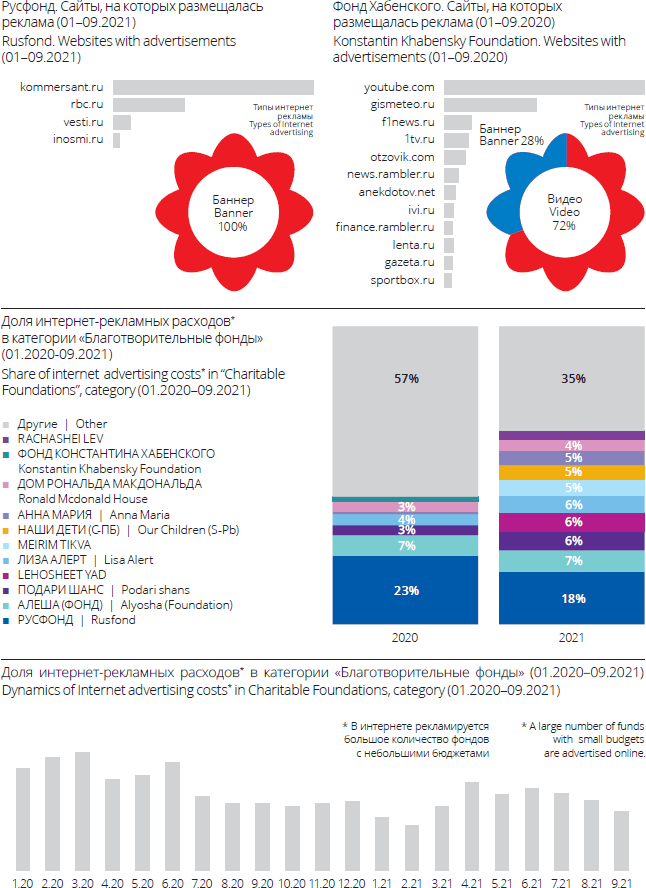 DISCUSSION OF FOUNDATIONS IN SOCIAL MEDIATo analyze topicality and ‘popularity’ of problems, one can use the following free services wordstat.yandex. ru/ or trends.google.ru/. They analyze the queries and, therefore, make it possible to assess the interest of people over time (although Yandex may be analyzed only over the last 2 years), by regions, linking to the informational or seasonal flights, looking through the context (word groups with the required word or brand). For instance, if in Yandex Wordstat you will try to trace the interest of people towards “Deti-Babochki” Foundation, that renders assistance to children with genetic dermatosis, you may note a slight growth of interest at the end of February and in March and a large outbreak of queries in May. In the first case, rare diseases day is marked on February 29 (or February 28 in common years), and the international month of ichthyosis awareness is marked. It is hard to search the diseases themselves by names because they are too complicated for remembering and are hard to be found through queries. But, evidently, the input of the “Deti-Babochki” Foundation to the agenda of the topic discussion information field can certainly be traced.