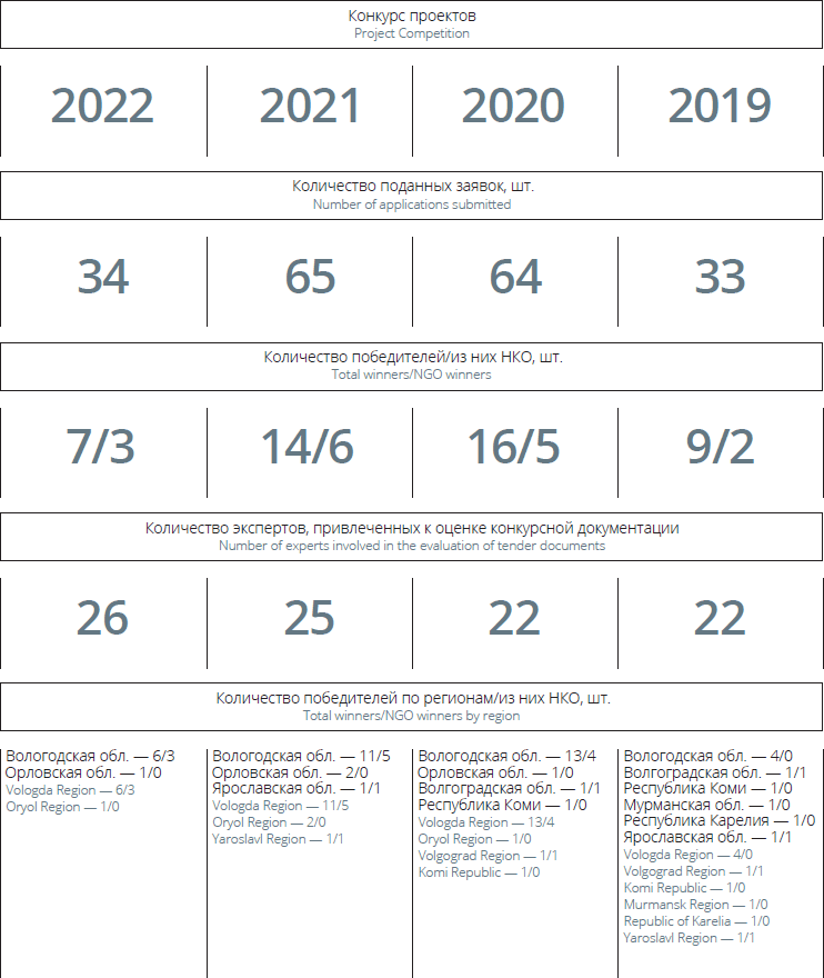 4. The principle of variability of contest mechanisms was introduced: projects can be selected through an open competition, initiated by Foundation employees after analyzing the problems and the current situation in their territories, or the Foundation’s specialists can participate in partners’ projects.