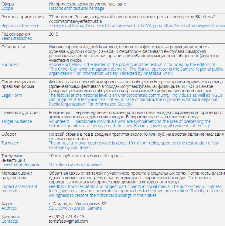 The festival originated in Samara in 2015 and over the course of 7 years has expanded to more than 75 locations in Russia. The technology developed proved to be understandable and applicable throughout the country. During this time, more than 130 objects have been restored.