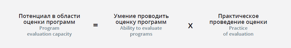 ПРИНЦИПЫ САМООЦЕНИВАНИЯ И РАЗВИТИЕ ПОТЕНЦИАЛА В СФЕРЕ ОЦЕНКИСамооценивание предполагает развитие собственного потенциала в сфере оценки. В связи с этим НКО может быть полезно иметь в виду следующую «формулу» (Kuzmin, 2009):