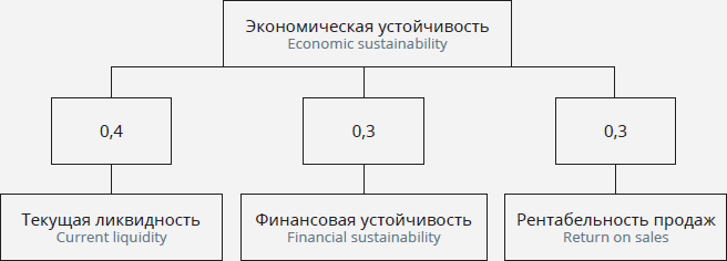 Экономическая устойчивость = 0,4 * Текущая ликвидность + 0,3 * Финансовая устойчивость + 0,3 * Рентабельность продаж