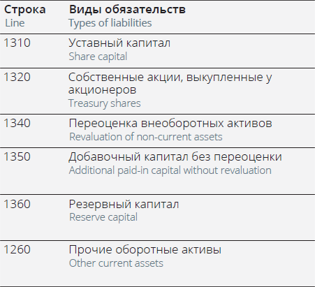 Таблица 2. Краткосрочные виды обязательств в форме бухгалтерского баланса