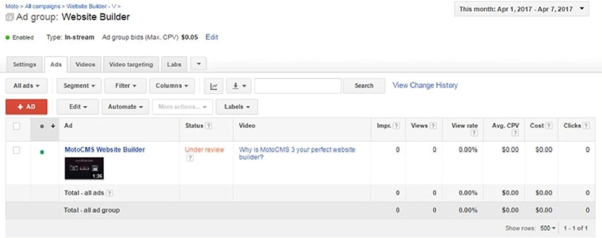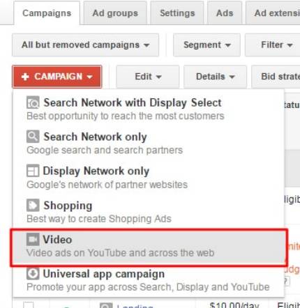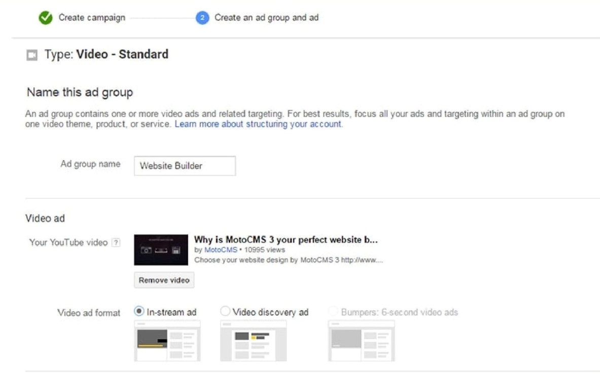 Новичкам лучше сперва добавить видео на YouTube, и только после этого заняться созданием видео кампании.