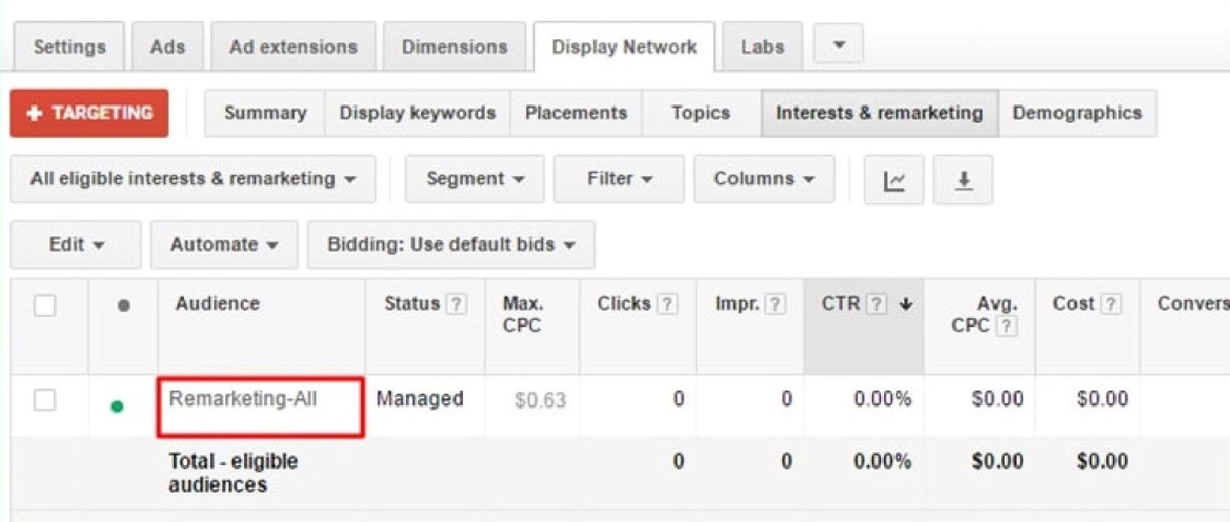На следующем изображении вы можете и не заметить все выбранные ремаркетинговые аудитории.