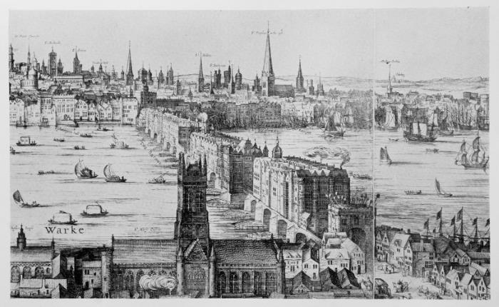 Лондонский мост. Гравюра К. Дж. Фишера. Из серии “ВидыЛондона”. 1616 год.