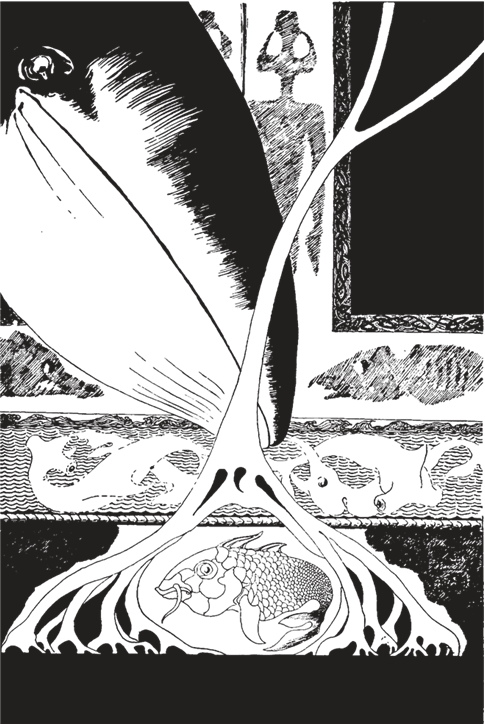 In the sea, once upon time, O my Best Beloved, there was a Whale[1], and he ate fishes. He ate the starfish and the garfish, and the crab and the dab, and the plaice and the dace, and the skate and his mate, and the mackereel and the pickereel, and the really truly twirly-whirly eel. All the fishes he could find in all the sea he ate with his mouth – so! Till at least there was only one small fish left in all the sea, and he was a small ’Stute Fish[2], and he swam a little behind the Whale’s right ear, so as to be out of harm’s way. Then the Whale stood up on his tail and said, ‘I’m hungry’. And the small ’Stute Fish said in a small ’stute voice[3], ‘Noble and generous Cetacean, have you ever tasted Man?’