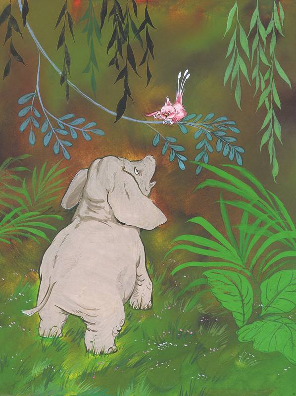 Когда наконец его оставили в покое, слонёнок увидел птицу колоколо, сидевшую на кусте терновника, и сказал: