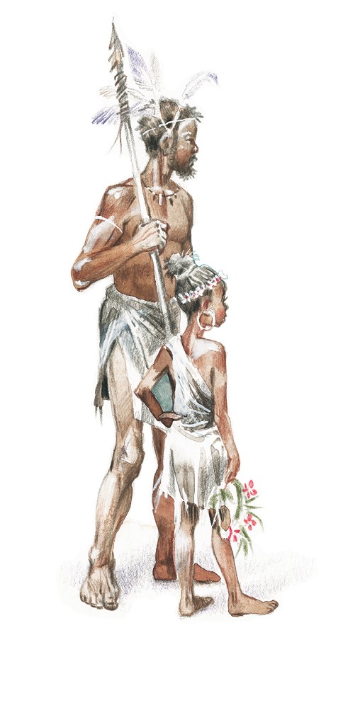 Они приняли чужого человека в своё племя, так как он был деликатен и не рассердился за то, что женщины обмазали ему голову глиной. Но с того дня и поныне (я думаю, что в этом виновата Таффи) лишь немногие маленькие девочки охотно учатся читать и писать. Другие же предпочитают рисовать картинки и играть со своими отцами, как Таффи.