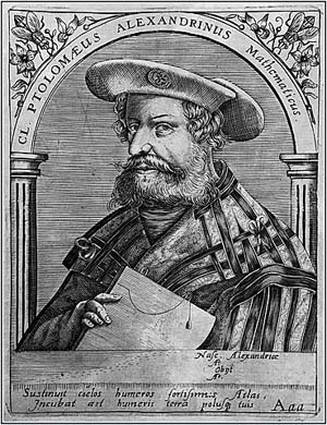 Ptolemy. Engraving by Theodor de Bry (1596)