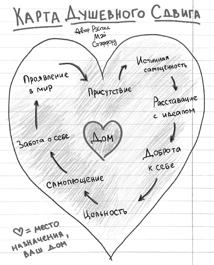 СОВЕТ 3: ОПИРАЙТЕСЬ НА САМОСОЧУВСТВИЕРассказав о концепции душевного сдвига, которая основана на личном опыте, я предложу вам изучить ваши переживания с помощью письменных заданий, эскизов и визуальных заметок, а также ментальных карт. Если вы столкнетесь с дискомфортом, уязвимостью, удивлением или внутренним вызовом во время упражнений и самоанализа, пожалуйста, оставайтесь добры и нежны к себе. За неприятными ощущениями часто скрывается важнейшая информация, которая станет для вас путеводной звездой на пути к исцелению. Главное – не бойтесь.