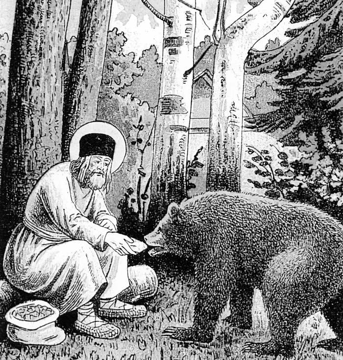 Преподобный Серафим. Иллюстрация к книге «Жития святых». Начало XX в.