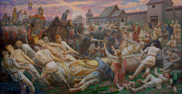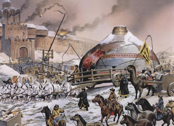 Пришли с Востока враги сильные, неведомые. Войско полмиллиона человек или же более. До того захватило оно Сибирь, и Великое царство Поднебесное, и города богатые юго-восточные. Был Китай государством единым. Но не уберегло Поднебесную единство ее. Народ исконный растворил народ пришлый с течением времен, но силу силе в веке сем не выставил. И Рязанское княжество пало, в году 1237, и другие части целого.