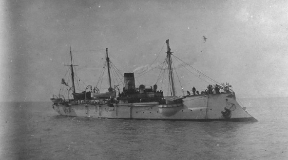 «Korean» before the battle with the masts chopped off to complicate aiming. Speed 13.5 knots (25 km. H), crew of 12 officers 162 sailors, weapons (quite solid) two 203 mm. guns, one 152 mm., four 37 mm, one torpedo tube