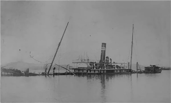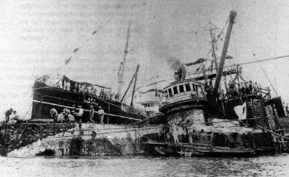 The Russian civil steamship «Sungari» is also located in the Chemulpo Bay. It is flooded in shallow water. Later, the Japanese will raise it and put it into operation.