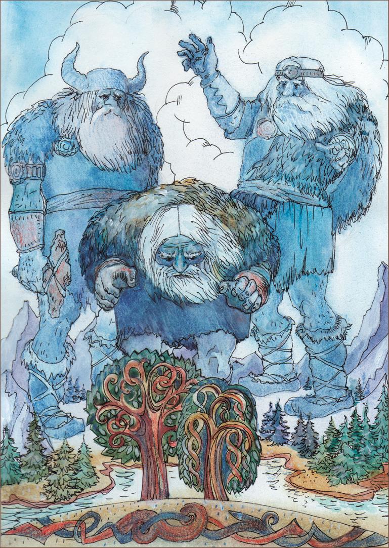 Брызги холодныеЭливагараётуном стали,отсюда свой родисполины ведут,оттого мы жестоки.Ётуны, или, по-другому, хримтурсы, – первое племя великанов, и родилось оно из пота Имира. Когда в первый раз заснул народившийся Ледяной Исполин, из-под мышек его вышли мальчик и девочка, а из ног – шестиголовый великан Трудгельмир.