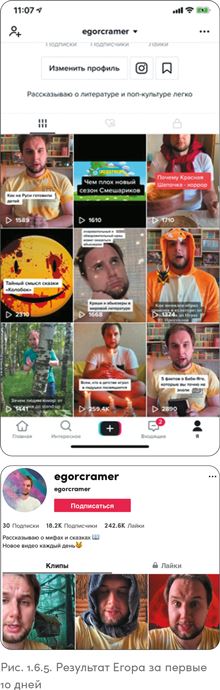 На момент издания книги у Егора 104 200 подписчиков и почти 1 млн лайков. Всё, что ему остается делать, – это продолжать снимать новые видео.