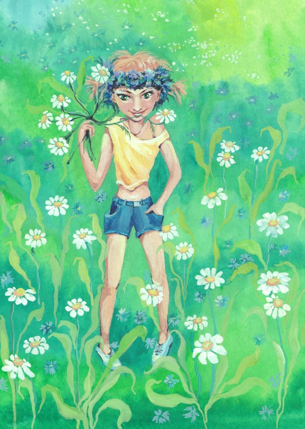 – Папа, не понимайка ты, какой-то! – Я лишь пожимала плечиками и раздувала сердито ноздри. – Как будто никогда небо не видел! Ведь оно в цветочек! Там – васильки и белые одуванчики. Одуванчики разлетаются, потому что дует ветер. Когда пойдёшь на работу обязательно посмотри в небо, и ты увидишь, что оно – в цве-то-чек!