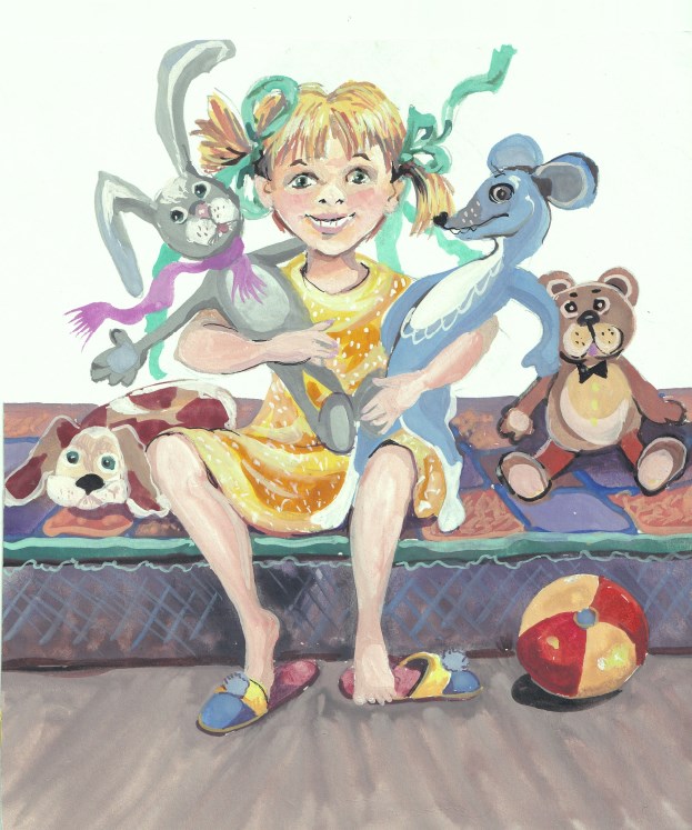 Такие трудности не испугали девочек. Они поверили маме и твёр-до решили стать щеночками. Притащили мягкий коврик из ванной комнаты, постелили у порога и по очереди лежали на нём, потом учи-лись лакать воду языком из тарелки и пытались чесать ногой за ухом.