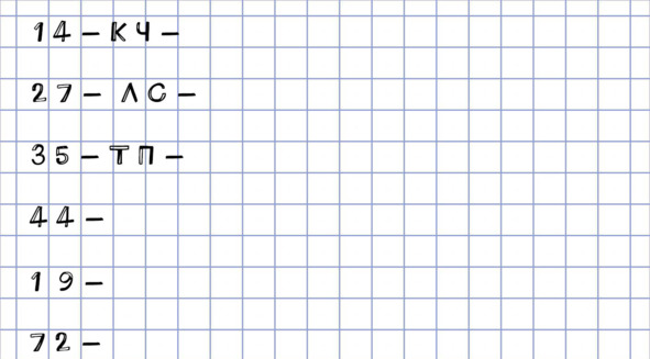 01- НК (ноль и кол), 13 – КТ (кол и три), 72 – СЛ и т. д.