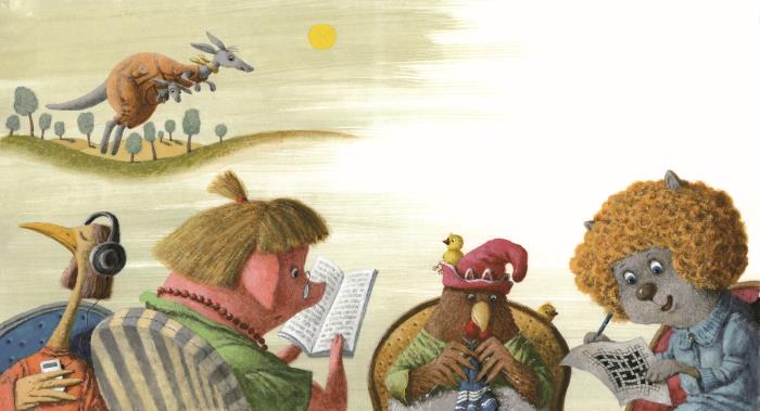 По полям и по полянам,По пустыням и саваннам,На прогулку взяв ребёнка,Невзирая на жару,В дни, когда другие мамыОтдыхают по диванам,Прикарманив Кенгурёнка,Скачет Мама-Кенгуру.Сова