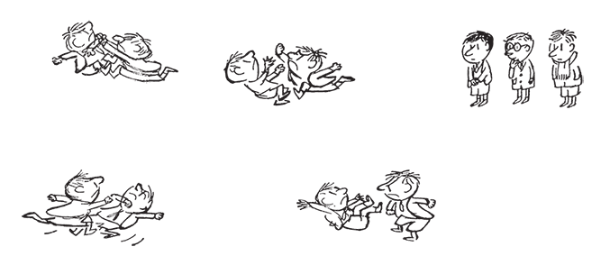 – Неправда, подлый врун! – ответил Ком, и Фабрис дал ему оплеуху. Ком слегка удивился, а потом начал пинать Фабриса ногами, а Фруктюйе решил отнять у меня карандаш как раз в тот момент, когда я собирался написать «Австрия», и я врезал ему кулаком по носу. Фруктюйе закрыл глаза и стал лупить всех подряд, и Иренэ тоже досталось, и тут Мамер крикнул: