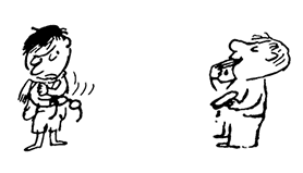Примчался наш воспитатель Бульон, разнял нас, обозвал бандой маленьких дикарей, сказал, что знать не желает, в чём тут дело, и влепил каждому написать по сто строчек.