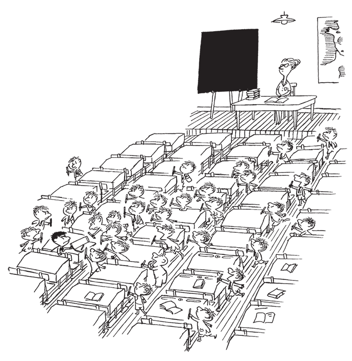 На уроке – это была география – он передал очки Альцесту, который сначала хорошенько вытер руки о свою куртку. Альцест надел очки, но тут ему не повезло, потому что из-за этого он не заметил учительницу, которая подошла к нему совсем близко.