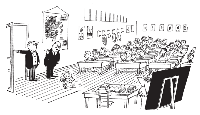 Мы уже вошли в класс, а Альцеста всё ещё не было. Учительница очень удивилась.
