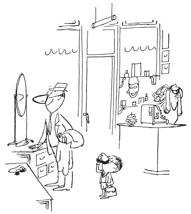 Дядя Эжен – папин брат; он толстый, любит рассказывать анекдоты и всё время смеётся. Мы не часто с ним видимся, потому что он ездит в разные далёкие поездки и что-то там продаёт – в Лионе, Клермон-Ферране и Сент-Этьене.