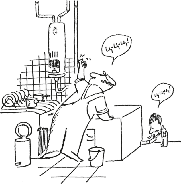 – Ну что вы, что вы! – сказал сантехник. – Он мне совсем не мешает. Мы с ним подружились, правда, Николя? Знаете, у меня тоже есть сын, почти такого же возраста, как ваш. Хитрец, я вам скажу! Ц-ц-ц! Теодор его зовут, в честь дедушки. Настоящий маленький чертёнок… Но мы тут не для того, чтобы говорить о Теодоре, верно?