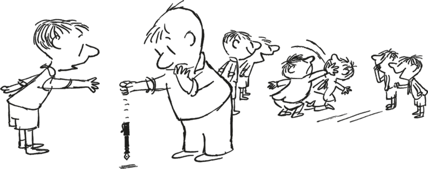 Учительница велела нам достать тетради, потому что собиралась дать нам диктант. Тут Жоффруа гордо достал свою ручку, и все были поражены. Потому что – вы не поверите! – у знаменитой ручки Жоффруа перо, видимо, и в самом деле было из золота: оно не писало!