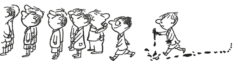 Тогда Жоффруа взял ручку, а так как она была вся в чернилах, он вытер её о свой рукав: что ни говори, но Жоффруа очень, очень аккуратный. Он дулся на нас, пока Бульон не вымыл руки и не включил звонок на урок.