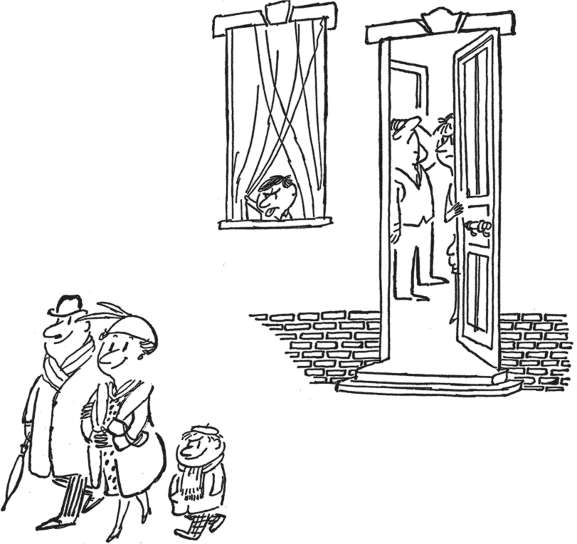 Тётя Матильда посмотрела на папу большими глазами, посадила Элуа к себе на колени, стала его гладить и обнимать; потом она сказала, что уже поздно, что завтра в школу и всем надо вставать рано. Тётя Матильда, дядя Казимир и Элуа надели пальто, тётя Матильда сказала, что всё было чудесно и что мы тоже как-нибудь могли бы им устроить сюрприз. И они ушли.