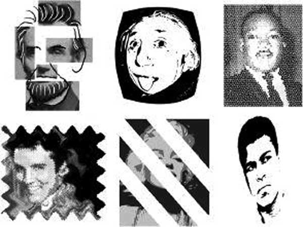 Вы, безусловно, смогли их узнать, хотя фотографии частично скрыты или искажены. Это пример иллюстрирует важнейшую способность человеческого мозга: мы можем распознавать рисунок, даже если воспринимаем (видим, слышим, чувствуем) лишь его часть и даже если он в некоторой степени изменен. Наша способность к распознаванию образов, по-видимому, опирается на инвариантные фрагменты рисунка – характеристики, которые не изменяются в условиях реальных вариаций. Видимые искажения, свойственные карикатуре или некоторым видам живописи (например, импрессионизму), подчеркивают характеристики образа (человека или объекта), который мы узнаем даже при изменении других деталей. В настоящее время искусство опережает науку в определении способностей человеческого восприятия. Тот же механизм мы используем, когда узнаём мелодию всего по нескольким нотам.