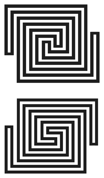 В 1969 году Марвин Минский не разделял энтузиазма по поводу нейронных сетей, несмотря на рост интереса к этой области и то, что он сам был в числе первых исследователей этого феномена еще в 1953-м. Вместе с Сеймуром Пейпертом они основали Лабораторию искусственного интеллекта в МТИ. В своей книге «Перцептроны» они показали, почему сеть, подобная перцептрону, была принципиально неспособна определить, является ли представленный ей рисунок связным. На обложке книги были представлены два рисунка (они приведены ниже). На верхнем рисунке черные линии не образуют единую неразрывную фигуру, в отличие от нижнего. Человек способен различить их, если присмотрится, как и простая компьютерная программа. Перцептрон, такой как «Марк 1», построенный Розенблаттом, не может достоверно это определить, поскольку представляет собой нейронную сеть с прямой связью – это значит, что соединения между нейронами в ней не образуют циклов.